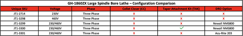 Powered by a 10HP, 3-phase motor, the GH-1860ZX delivers consistent torque for aggressive roughing cuts and dependable performance under sustained load. The 3.15" spindle bore allows larger material to pass directly through the headstock, reducing secondary operations and improving shop throughput.